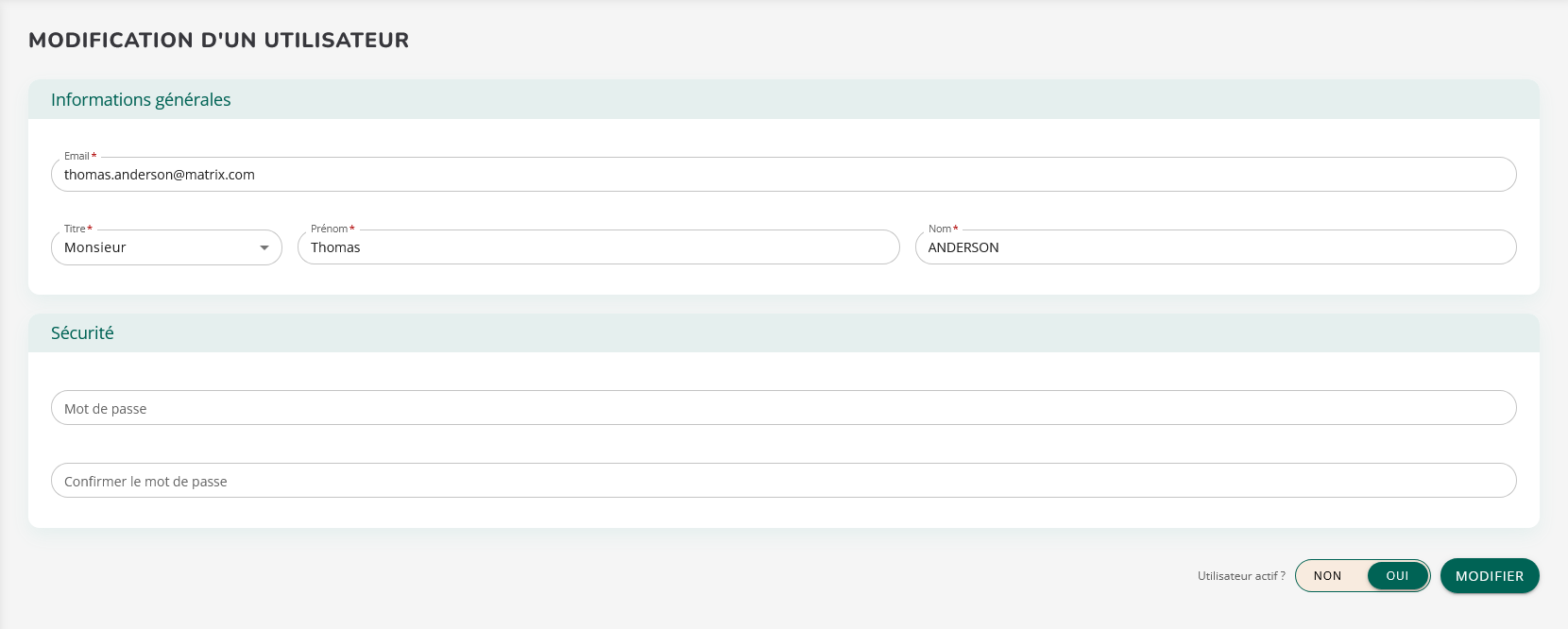 Mise à jour des informations
