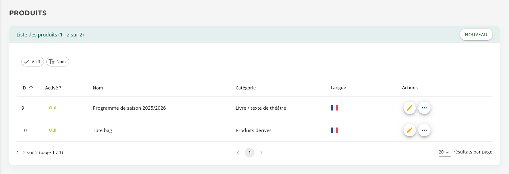 La liste des produits permet de gérer efficacement l’ensemble des offres vendables : consultation, filtrage, modification et création. Elle constitue le point d’entrée principal pour administrer les produits dans Vevent.