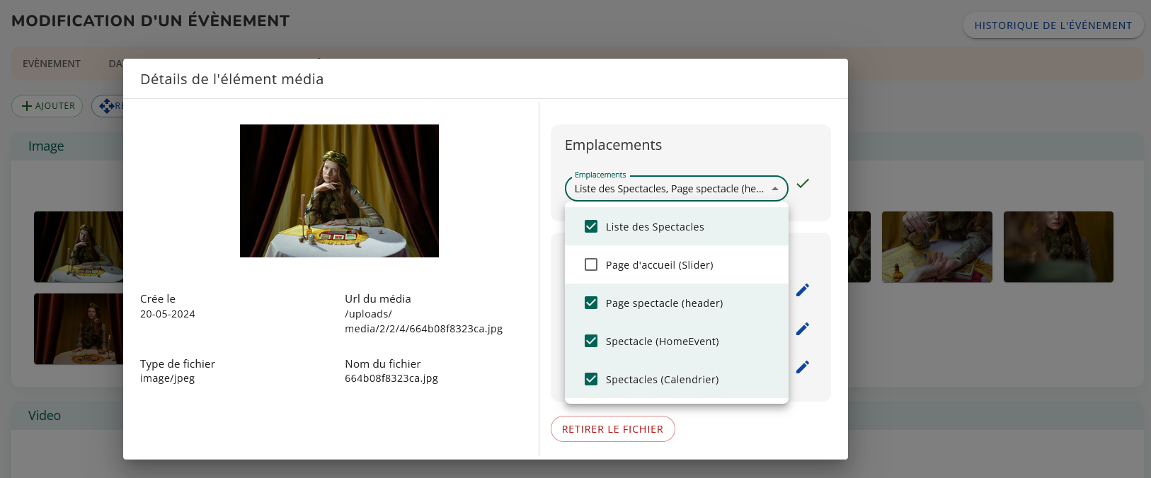 Lorsque vous associez un média à un événement, vous ne dupliquez pas le fichier : vous référencez un média existant ou vous en ajoutez un nouveau à la bibliothèque.