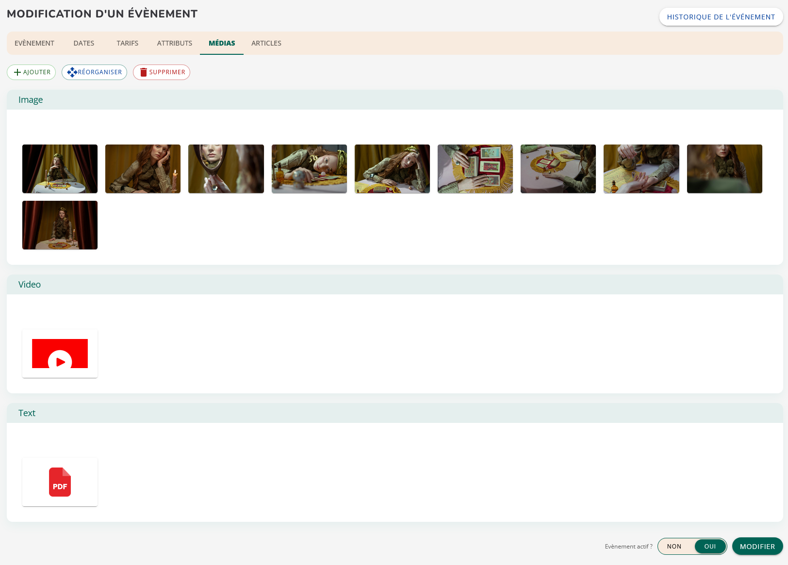 L’onglet Médias permet d’associer et d’organiser les visuels et documents d’un événement. Une gestion soignée des médias améliore la lisibilité, l’attractivité et les performances du site.