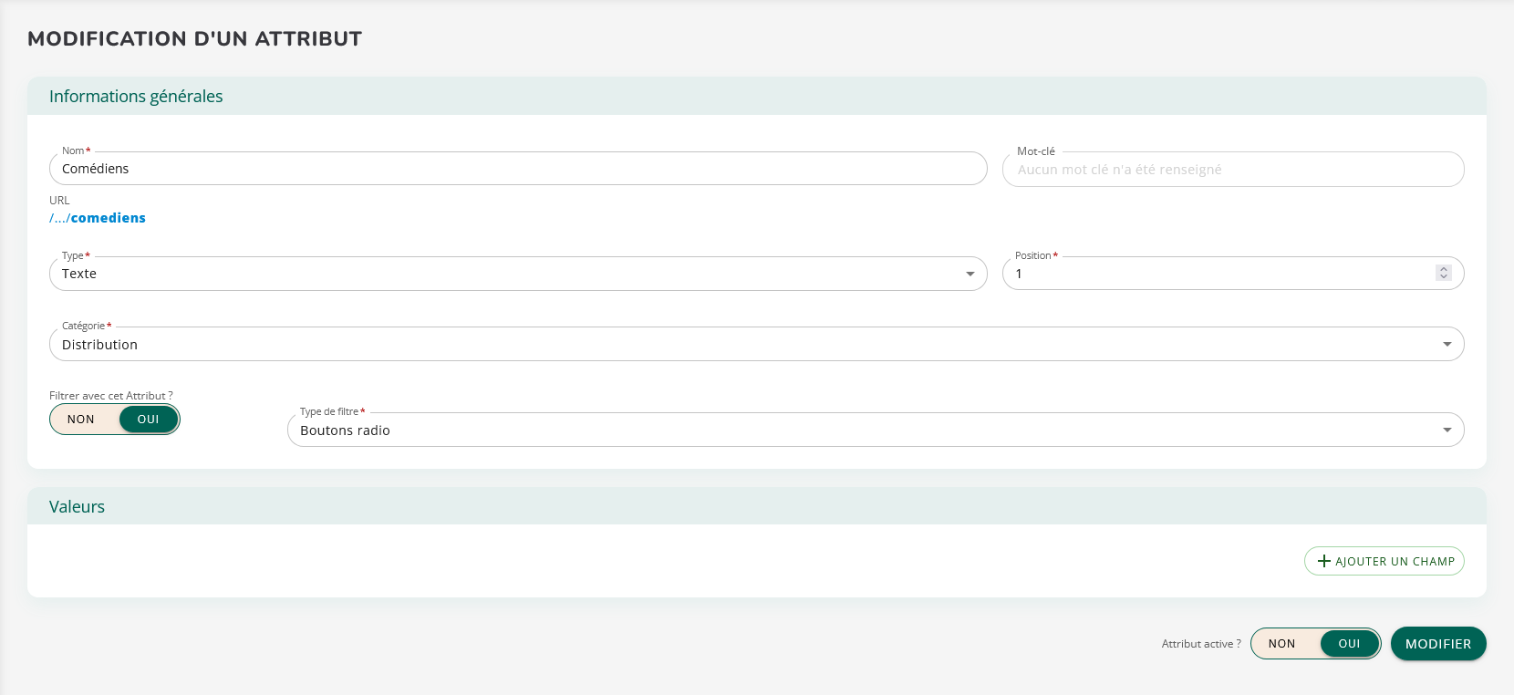 Évitez d’utiliser les attributs comme un “fourre-tout”. Un attribut doit correspondre à une information récurrente et structurante. Pour le reste, privilégiez les champs éditoriaux (description, blocs, etc.).
