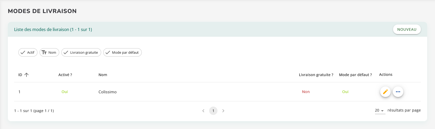 Depuis l’écran de gestion des modes de livraison, il est possible de :