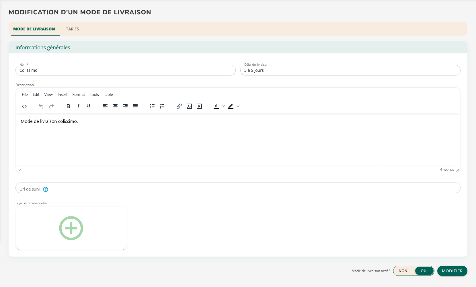 Créer et gérer un mode de livraison