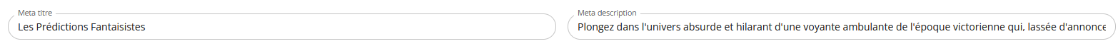 Les champs SEO permettent de personnaliser la manière dont une page est présentée dans les résultats des moteurs de recherche.